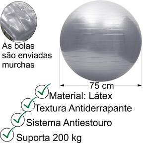 Bolas suiça 75 cm pilates ginástica yoga A bola suiça para ginástica - 75 cm, pode ser utilizadas em academias, treinamento funcional, pilates, fisioterapia, reabilitação, oferecendo uma variedade de exercícios com diferentes graus de intensidade., tonifica a musculatura, exercita o equilíbrio, coordenação motora, flexibilidade, alongamento.