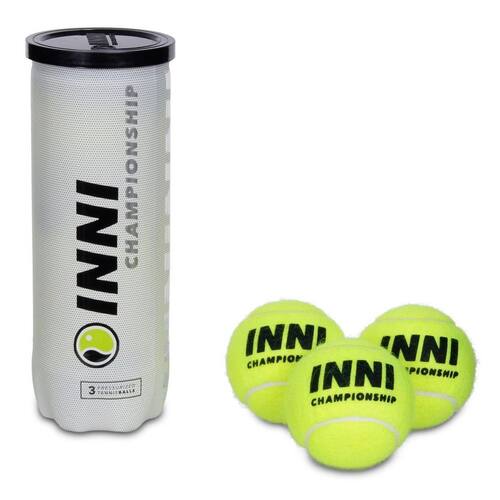 Conheça as características da Bola de Tênis Inni Championship Tubo com 03 Bolas - Perfil: Tênis; - Detalhamento: Bola de Tênis com feltro sintético agulhado e borracha natural, possui ótima resistência à deformação, tubo contendo 3 bolas, ideal para todos os tipos de quadra, aprovado pela ITF; - Origem: Importado. Marca: Inni Sport Ean: 745760388011