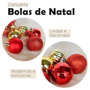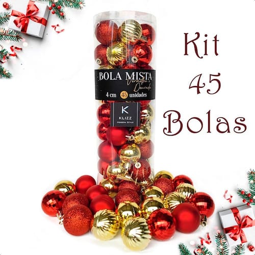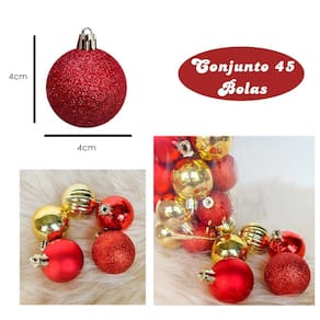 Conjunto de bolas de Natal com 45 unidades, ideal para decorar sua árvore e trazer o espírito natalino para sua casa. Cada bola possui um tamanho compacto de 4 cm, perfeito para árvores de todos os tamanhos. Este conjunto misto combina as elegantes cores vermelho e dourado, que proporcionam um visual clássico e sofisticado à decoração. As bolas apresentam diferentes acabamentos para adicionar textura e brilho ao ambiente: Bolas com glitter: para um toque de brilho intenso e festivo. Bolas foscas: que oferecem uma aparência discreta e elegante. Bolas espelhadas: que refletem luzes e cores, criando um efeito mágico. Bolas 3D: com detalhes em relevo que adicionam profundidade e sofisticação. Combinando qualidade e design, este conjunto é perfeito para quem deseja um Natal cheio de charme e estilo. Marca: Klizz