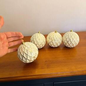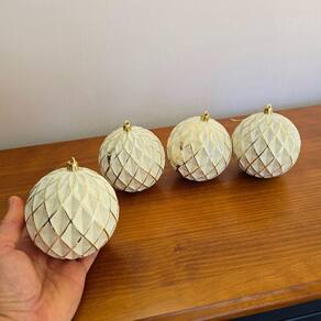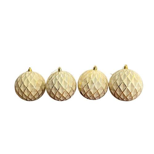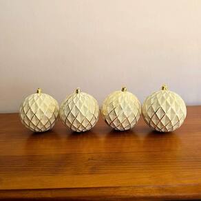 O Jogo de Bolas de Natal Decorativas Cromus Jogo - Bolas de Natal Trabalhadas é indicado para decoração natalina em diferentes ambientes. Com kit de 4 unidades, ajuda a compor uma decoração mais completa e harmoniosa com praticidade. As bolas são confeccionadas em plástico e trazem acabamento trabalhado nas cores branco e dourado, com 10 cm de diâmetro cada. Podem ser usadas na árvore de Natal, guirlandas, centros de mesa e outros arranjos decorativos em casa, escritório ou comércio.