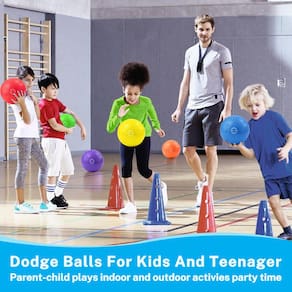 -?Desempenho máximo?Fácil de inflar. O dodgeball é feito com nossa textura antiderrapante para facilitar a aderência. Macias ao toque e fáceis de bater, elas não perderão a elasticidade, formigarão ou quebrarão facilmente, como as clássicas bolas de playground.