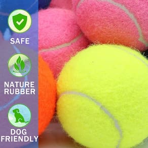 -?MATERIAL E DESIGN SEGUROS?Nossa bola de tênis de 2 polegadas é feita de borracha natural e material de feltro. O feltro não abrasivo é seguro para os dentes do seu cão e é muito resistente, não é fácil de quebrar em uso normal.