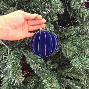 Modelo: Jogo Bolas Veludo Gomo Azul - Fio Ouro 3 Pçs