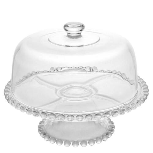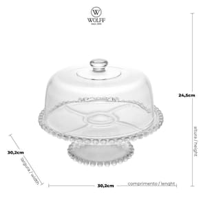 Boleira com Pé e Cúpula Cristal Pearl Wolff 31cmx25cm Prato para Bolos Doces.