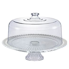 Fabricada em vidro e acrílico transparente, ela possui um design clássico com pedestal e uma cúpula alta que protege o alimento, além de detalhes em lapidação canelada na base do prato, unindo a beleza da exposição com a funcionalidade de manter seus confeitos frescos e protegidos.