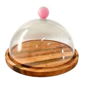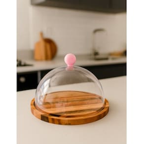 Boleira de Madeira com Tampa e Pegador Rosa 28 cm Utily Domama - Informações