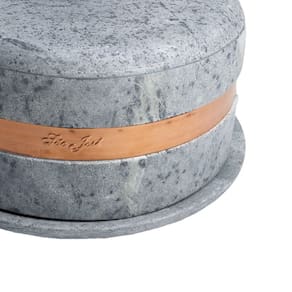 Boleira em pedra sabão com acabamento em cobre, ideal para servir bolos, tortas e sobremesas. Mantém a temperatura dos alimentos por mais tempo. Visual rústico sofisticado. Resistente e ideal para uso diário.Vendido por PANELA DE FERRO FUNDIDO e entregue por Casas Bahia