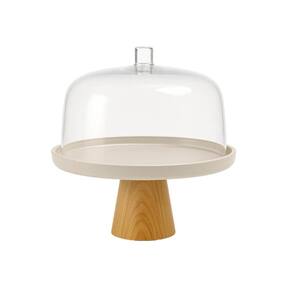 Boleira Porta Bolos com Cúpula e Pé 25x22cm Bege Lume Ou Mesa Posta Doces Tortas.