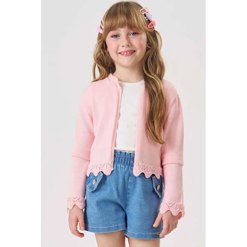Descrição Bolero Infantil Kukiê todo em tricot, fechamento/abertura superior por botão muito lindo, charmoso e uma peça coringa para completar muitos looks! Essa proposta vai deixar a sua princesa ainda mais linda e super bem vestida nas ocasiões mais especiais. Sugestão: Sua princesa poderá combinar as peças Kukiê com botinhas, galochas, sapatilhas ou até mesmo um lindo e confortável tênis, esse é um look muito versátil, sua princesa estará pronta para arrasar em qualquer ocasião, além de estar ainda mais linda e confortável. Uma ótima opção também é aderir acessórios para valorizar o look como tiaras ou laços que vão deixar essa composição ainda mais encantadora e alegre.Marca: Kukiê. Composição: 100% algodãoColeção: Outono/Inverno Marca: Não Informado