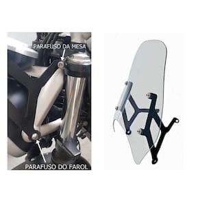 BOLHA PARABRISA GRANDE DRAKAR PARA TRIUMPH   Aplicação : Triumph Street Twin e Speed Twin 900 2015 até 2022   DIMENSÕES  40cm altura X 38cm largura 3mm espessura   Conteúdo 1 Unidade : Bolha (policarbonato de alto impacto) 1 Unidade : Hastes em aço carbono pintada eletrostaticamente em preto fosco 1 Unidade : Manual     Fabricação: em policarbonato de alto impacto,não sofre alteração em sua estrutura, ideal para diferentes estações sendo uma excelente aliada em suas viagens!    Pintura: eletrostática coloração preto fosco garantindo durabilidade não oxida.   Beneficios da bolha: Protege contra vento, insetos, pedras, frio. Diminui turbulências em viagens Aumenta a estabilidade, não vibra em alta velocidade. Elimina o fluxo de ar que incide no peito do motociclista Diminui consideravelmente cansaço físico, braço, ombro, coluna. Instalação fácil   1x  Bolha Triumph ST-Grande