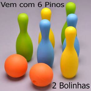 • Feito para crianças a partir de 3 anos, este jogo de boliche com 6 pinos e 2 bolas, todos feitos em vinil macio para segurança e diversão garantida! Ideal para promover habilidades motoras e coordenação, dentro ou fora de casa.