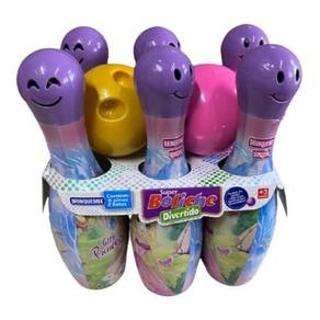 O jogo vem com duas bolas de plástico com um diâmetro de 9 cm, perfeitas para as pequenas mãos das crianças. As bolas são feitas de plástico, um material durável e seguro para as crianças. Além disso, o jogo inclui seis pinos de boliche, também feitos de plástico, com uma altura de 27 cm.