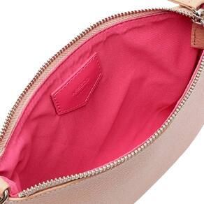 A Bolsa feminina tiracolo pequena tem formato retangular, laterais arredondadas e acabamento texturizado. Traz alça lateral e alça curta de ombro, ambas em tiras finas, reguláveis e removíveis. Possui fecho em zíper e puxador. Com inscrição do nome da marca na capa.