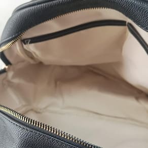 Parte interna dois bolsos abertos e um bolso fechado com zíper