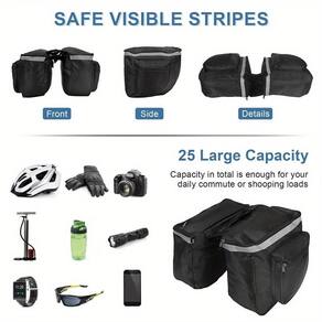 Principais características: Design duplo e funcional: dois compartimentos laterais espaçosos que distribuem o peso uniformemente, mantendo o equilíbrio da bicicleta. Material impermeável: confeccionada em poliéster reforçado, protege seus pertences contra chuva e poeira. Instalação fácil: fixação rápida e estável no bagageiro traseiro, com alças ajustáveis para maior segurança. Detalhes refletivos: faixas refletivas integradas, aumentando sua visibilidade e segurança em pedais noturnos. Versátil e elegante: combina funcionalidade com um estilo moderno, disponível em cores que destacam a sua bike. Compartimentos extras: bolsos externos adicionais para acesso rápido a pequenos objetos. Especificações técnicas: Material: poliéster durável e reforçado. Capacidade de armazenamento: ampla capacidade, ideal para transportar alimentos, roupas, ferramentas e outros itens. Compatibilidade: adaptável a diversos tamanhos de bagageiros traseiros. Peso suportado: fabricada para suportar diferentes cargas com segurança. Por que escolher a nossa bolsa lateral Funcionalidade: organize todos os seus itens sem complicação. Proteção: garanta a segurança de seus pertences em qualquer condição climática. Praticidade: instalação rápida e design dobrável para fácil armazenamento. Segurança: detalhes refletivos garantem maior visibilidade à noite. Versatilidade: ideal para uso urbano, entregas, trilhas ou viagens. Cuidados com o produto: Limpe com pano úmido após o uso. Evite exposição prolongada ao sol para preservar a cor e o material. Compre agora e melhore suas pedaladas Adicione praticidade, organização e estilo às suas aventuras de bicicleta. Garanta já a sua bolsa lateral e experimente o máximo de conforto e funcionalidade em todos os seus trajetos