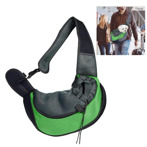 Fecho lateral de facil acesso, com ziper para acomadar facilmente o seu pet, fechamento superior com elastico, tecido de malha respiravel e bolsa na lateral para colocar pequenos itens.