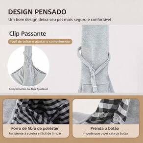 O formato anatômico mantém seu pet acomodado junto ao corpo, proporcionando sensação de segurança. Ideal para filhotes, pets idosos ou que se cansam facilmente durante caminhadas.