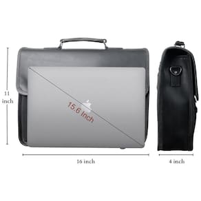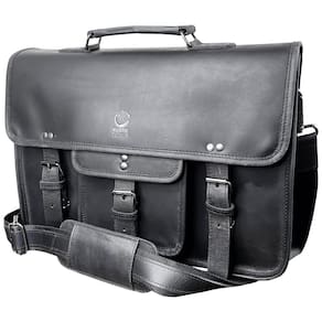 40,64 x 27,94 x 10,16 centímetros (CxAxL). Há espaço para acomodar seus MacBooks, Chromebooks e laptops favoritos de até 38,1 centímetros. Couro de Búfalo Real e Robusto:
