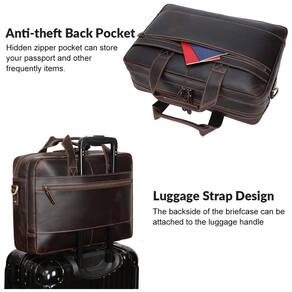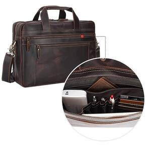 Armazenamento espaçoso: Possui dois compartimentos grandes, dois bolsos frontais com zíper, dois bolsos internos com zíper, três bolsas internas, três porta-canetas, quatro compartimentos para cartões e um bolso traseiro com zíper. A pasta de couro vintage é perfeita para suas viagens diárias de trabalho e de negócios.