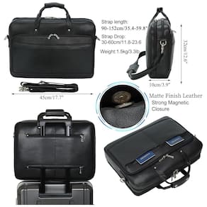 Alça de Bagagem Conversível: Durante longas viagens de negócios, você pode abrir os zíperes do bolso traseiro com zíper para permitir que seja uma alça de bagagem para pendurar a maleta na mala com rodinhas para liberar a fadiga do transporte e tornar a viagem mais fácil. No dia a dia, feche os zíperes para usar como bolso. A bolsa de couro pode ser transportada como bolsa de alça superior, pasta para laptop de 17", bolsa de escritório para trabalho comercial, bolsa mensageiro de viagem, bolsa de ombro diária, pasta de professor ou advogado.