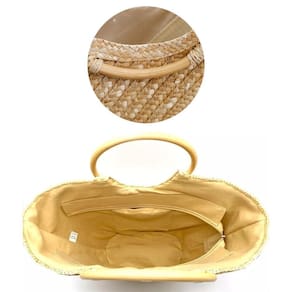 Com seu interior amplo e compartimentado, a Bolsa Cesta Grande Alça Madeira oferece espaço para tudo o que você precisa para aproveitar o seu dia sem preocupações. Canga, protetor solar, óculos de sol, livro, toalha... Cabe tudo