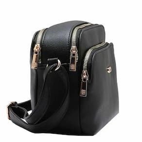Alça em PU com ótimo acabamento em costura contrastante, adicionando um toque de sofisticação, com ferragens em dourado.