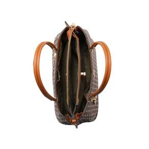 estampa de monograma e detalhe metálico de ursinho, traz charme e autenticidade. Possui alças de mão fixas e alça transversal