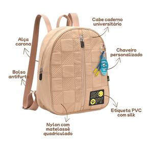 Características: - Nylon com matelassê quadriculado - Compartimentos Internos - Alça de mão - Etiqueta PVC com silk - Metais níquel - Forro personalizado - Chaveiro personalizado - Bolso Antifurto - Alça Carona