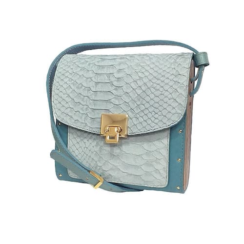 Bolsa Couro Com Lateral Em Madeira Pequena Verde Água - Verde - Pequeno