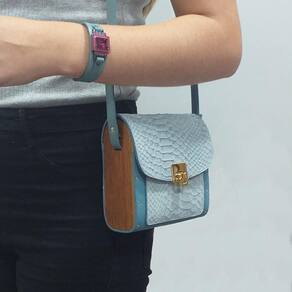 A Bolsa couro Armazem RR Bijoux com lateral em madeira pequena verde água é produzida no Brasil em couro com as laterais em madeira de lei que levam uma camada de verniz marítimo deixando sua bolsa super resistente água e queda.