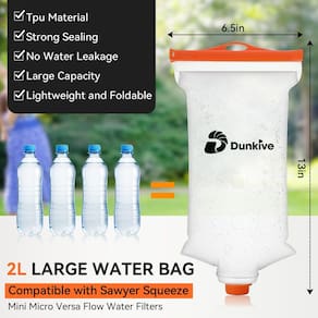 Nosso saco de água de 2L é compatível com os filtros Sawyer Squeeze SP128 e SP129, servindo como um substituto confiável para os sacos de água suja autênticos. Com um design de abertura dupla com bocas largas e estreitas, permite coleta rápida de água e filtragem sem costura. Feito de material TPU durável, este saco de água é leve, dobrável e à prova de vazamento, oferecendo uma grande capacidade de 2 L enquanto mantém um formato compacto e portátil. A qualidade confiável do TPU em comparação com o material PE padrão garante melhor durabilidade e resistência a vazamentos, o que o torna a escolha ideal para entusiastas de atividades ao ar livre. Características: 1. Este produto é um saco de água compatível com filtros Sawyer e se conecta com segurança para uma purificação eficiente da água. 2. Compatível com filtros Sawyer Squeeze SP128/SP129. 3. Ideal para caminhantes, campistas e aventureiros ao ar livre. 4. Dobrável e leve para fácil armazenamento e transporte. 5. Feito de material TPU durável com aberturas de boca largas e estreitas. Especificações: Material: TPU Capacidade: 2L Peso: 90 g Cor: Transparente Tamanho: 13,8 × 6,6 × 0,7 polegadas Conteúdo da embalagem: 1 bolsa de água - [Compatível com filtro de água Sawyer Sawyeze] Projetado para compatibilidade perfeita com os sistemas de filtro de água Sawyer Squeeze SP128 e SP129, esta bexiga de água de substituição garante filtragem eficiente e desempenho confiável como um substituto para o saco de água suja autêntico. - [Design de abertura dupla para versatilidade] A abertura ampla da boca simplifica a coleta de água, tornando as recargas rápidas e sem complicações, enquanto a boca estreita se integra perfeitamente aos filtros de água para uma purificação suave e eficiente, aumentando a conveniência durante aventuras ao ar livre. - [Estrutura TPU premium] Feito de material TPU de alta qualidade, este recipiente de água é excepcionalmente durável, resiste a vazamentos, abrasões e desgaste muito melhor do que materiais de PE tradicionais, garantindo uso duradouro em ambientes robustos. - [Tecnologia superior à prova de vazamentos] Com um design avançado à prova de vazamento, esta bolsa de filtro de água retém a água com segurança em várias condições, oferecendo hidratação confiável para caminhadas, acampamento e outras atividades ao ar livre. - [Design ultraleve e portátil] Pesando apenas 90 g e ostentando uma capacidade de 2 litros, este saco de água dobrável para caminhadas combina portabilidade leve com amplo armazenamento, tornando-o a solução de hidratação perfeita para caminhantes, campistas e aventureiros.