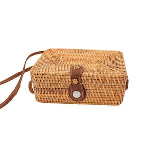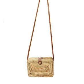 Bolsa De Bambu Retangular Feminina Com Alça Fixa Forrada Verão