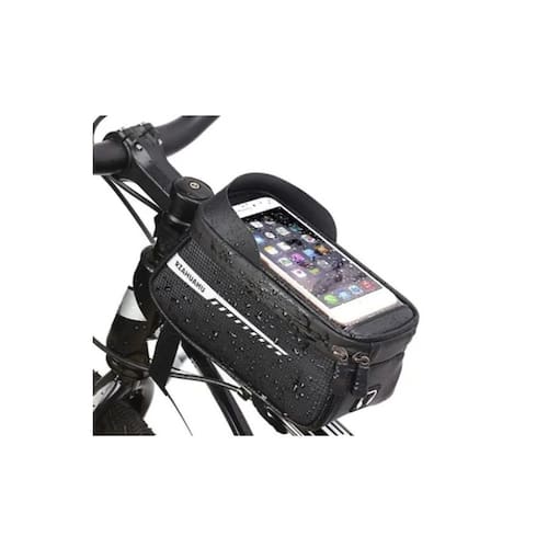 Tela sensível ao toque de alta sensibilidade, a operação do telefone celular ainda é muito suave e uma viseira solar é adicionada para ver a tela claramente sob o sol. Alta densidade e excelente material impermeável, design à prova de respingos. Design de logotipo reflexivo, pode ser encontrado por pessoas distantes no escuro. Com grande capacidade e incrível compatibilidade, você pode colocar seus pertences. Instalação rápida fixa de três pontos, fácil instalação e desmontagem. Há um design especial de orifício para fone de ouvido, para que você possa ouvir música enquanto dirige. Design universal: a nova bolsa para celular de 6,5 polegadas é adequada para quase todos os smartphones. Especificações:\ nCor: preto\ nMaterial: couro de PVC\ nAdequado para celular Tamanho: 8,5 cm * 16,5 (recomendado para uso de celular abaixo de 6,5 polegadas)\ nO pacote inclui: 1 * bolsa de bicicleta