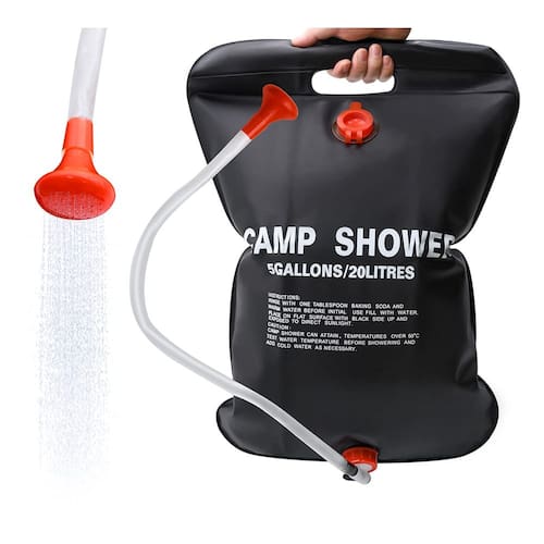 Dicas quentes: 1. Por favor, aperte a tampa após encher a água para evitar vazamentos 2. A temperatura de aquecimento não deve exceder 122° F 3. Verifique se a temperatura da água é adequada antes de usar, se estiver muito quente, adicione um pouco de água fria 4. Não beba, quando não estiver em uso, despeje a água Especificações: Nome do item: saco de chuveiro solar Material: PVC Cor: preto Capacidade de água: 5 galões/20 l Tamanho do pacote: 12 x 5,5 x 2,8 polegadas Peso do pacote: 0,7 libras Lista de pacotes: 1 x saco de chuveiro solar 1 x cabeça de chuveiro 1 x válvula de saída 1 x barra estabilizadora de PVC 1 x mangueira 1 x funda de gancho suspenso -?Grande capacidade?- Você receberá 1 pacote sacos de chuveiro solares com uma grande capacidade de água de 5 galões/20L, o suficiente para cerca de 1 ou 2 chuveiros. O fluxo de água é fino e suave, proporcionando uma melhor experiência de banho! -?Material durável?- O chuveiro solar usa uma alça resistente e um tubo de plástico reforçado e é feito de material de PVC durável, que não é tóxico e ecológico, durável e não se deforma facilmente. -?Design de absorção de calor?- Sob luz solar direta, a bolsa de banho de acampamento pode aquecer água a 105° F (40° C) em apenas 3 horas. Não há necessidade de gás ou eletricidade para desfrutar de um banho quente ao ar livre! -?Fácil de usar?- É projetado com um interruptor ajustável liga/desliga para controlar o fluxo de água. A funda de gancho suspenso pode ser facilmente pendurada em uma árvore ou barraca de banho para lavar seu corpo, rosto, mãos ou lavar pratos, comida, carros, etc. -?Camping to Glamping?- Ela permite que você desfrute de um banho refrescante e agradável durante o rafting, acampamento, pesca ou caça. Você também pode levá-lo à praia no verão e lavar o sal e a areia depois de nadar.