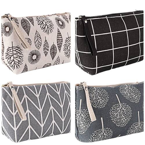 Especificações: Material: tela Cor: tamanho múltiplo: 8,27/5,9* 2,56* 4,72 polegadas (comprimento superior 8,27 polegadas) (comprimento inferior 5,9 polegadas) Por que você escolhe nossa bolsa de cosméticos de lona? 1. A bolsa de cosméticos é fácil de limpar, leve, muito durável e leve de transportar. 2. A bolsa de cosméticos tem uma grande capacidade e pode conter muitas coisas; o design liso do zíper é fácil de abrir e fechar. 3. Muito adequado como presente para familiares e amigos, design de padrões fofo e interessante adequado para pessoas de diferentes idades. 4. As dimensões são todas medidas manualmente, pode haver alguns erros; devido aos diferentes monitores utilizados, o produto tem uma pequena diferença de cor. A embalagem inclui: 4 sacolas de cosméticos de lona impressas -?O pacote inclui?Você receberá 4 sacolas de cosméticos de lona com padrões diferentes, o tamanho é 8,27/5,9* 2,56* 4,72 polegadas (comprimento superior 8,27 polegadas) (comprimento inferior 5,9 polegadas), que podem acomodar suas necessidades diárias -?Alta qualidade?Nossa bolsa de cosméticos de lona é feita de material de lona premium, sem tóxico e cheiroso, macia e confortável, e pode ser usada por muito tempo -?Aparência bonita?Essas bolsas de cosméticos usam padrões impressos que parecem muito fofos e interessantes. O design clássico de cores destaca seu estilo moderno -?Bolsa de cosméticos multifuncional?Pode ser usada para armazenar chaveiros, telefones celulares, cartões de crédito, moedas, cosméticos e outros itens pequenos, o que pode ajudá-lo a organizar seus itens -?Ampla aplicação?É muito adequada para viagens, férias, compras, trabalho ou uso diário. Pode ser utilizado como bolsa de cosméticos, estojo de viagem, carteira, bolsa de armazenamento