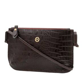 Corpo: Construção em couro de espessura fina e acabamento lezard. Forro em sarja engomada produzida em blend de poliéster e algodão. Logomarca aplicada com placa metálica.