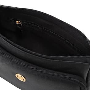O que cabe Aparelho telefônico, pertences pequenos (molho de chaves, fones de ouvido), carteira pequena ou documentos soltos. //dependendo do tamanho não cabem todos os itens acima de uma vez.