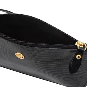 Dimensões: 20 x 13 x 02 cm (comprimento x altura x largura) Material: couro lezard Origem: nacional; feita por mãos brasileiras