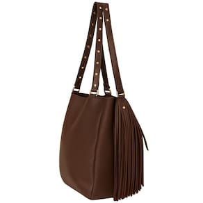 Bolsa De Couro Ombro Camurça Franjas Atual - Café