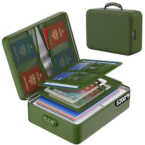 ENGPOW Bolsa de documentos à prova de fogo de 2,871 °C com fechadura, com isolamento térmico, à prova de fogo e à prova d'água, organizador de documentos de 8 camadas, caixa de armazenamento portátil para viagem doméstica para arquivos importantes, laptop, Geen - À prova de fogo e à prova de água de 2,871 °C. A bolsa de documentos atualizada à prova de fogo é feita de material revestido de silicone e folha de alumínio que suporta a temperatura de até 2,871 °C (proteção dupla segura). O forro de alumínio não derrete facilmente sob alta temperatura após vários testes. Foi aprovado pelo teste SGS (certificação UL94 VTM-0). A bolsa é à prova de fogo e resistente à água, o que pode proteger efetivamente seus documentos importantes em um incêndio, inundação e clima úmido. Eles manterão seus arquivos intactos. - Caixa macia: grande capacidade (38,5 x 28,5 x 11 cm), em comparação com outras bolsas, nossa bolsa de arquivo à prova de fogo adota um design multicamadas que pode atender a todas as suas necessidades de armazenamento. Inclui 4 bolsas de malha para passaporte, 16 compartimentos para cartões, 4 bolsos U Disk, 7 camadas de pasta e um bolso principal com um grande espaço. Pode armazenar seus documentos importantes, arquivos, dinheiro, passaporte, disco U, cartões, laptop, certificados de maneira segura e organizada. Ótima maneira de organizar seus arquivos, fácil para você encontrar os arquivos que você procura rapidamente. - Proteção de bloqueio combinado: em comparação com outras bolsas, nossa bolsa organizadora de documentos à prova de fogo de 2,871 °C pode bloquear arquivos e itens dentro da bolsa para segurança. O bloqueio de senha de alta qualidade oferece máxima segurança para seus objetos de valor, como contratos, cartões, certificados, materiais de conferência, passaportes etc. O pacote inclui um manual de instruções para trava (sem necessidade de chaves). A bolsa à prova de fogo para arquivos é selada com zíperes profissionais à prova d'água que podem suportar spray de alta velocidade da mangueira de incêndio. - Proteção de segurança múltipla: Design com uma alça forte para carregar tudo o que você precisa facilmente. Você não apenas pode colocá-lo em sua casa, escritório, carro, armário de armazenamento, mas também pode levá-lo para acampamento, viagens e várias atividades ao ar livre. Obviamente, dar de presente de Natal para sua família, clientes ou funcionários também é uma boa escolha. A bolsa à prova de fogo recém-projetada é mais leve, mais fácil de transportar do que um cofre à prova de fogo e fácil de dobrar, pode caber em arquivos/documentos de tamanho oficial e cartas. - Serviço pós-venda confiável: em caso de emergência, nossos sacos de arquivo à prova de fogo são mais leves, mais fáceis de transportar do que cofres à prova de fogo e rápidos de pegar e levar. Queremos apenas apresentar o melhor aos clientes, para proteger seus objetos de valor. Se houver algum problema de qualidade, sinta-se à vontade para nos informar. Prometemos providenciar uma substituição ou reembolso de 100% imediatamente. Pronto para responder dentro de 24 horas, sua sugestão tem um grande impacto na atualização de nossos produtos.