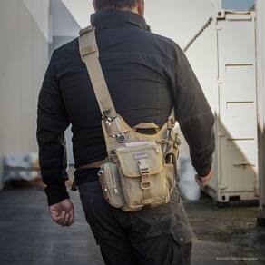 - Outras características incluem uma alça feita de correia de 1,9 cm, gola de tempestade paracord para ajudar a manter o conteúdo fora do clima, alça de cintura removível, 3 laços de correia compatíveis com PALS na base da alça esquerda para fixar outros equipamentos Maxpedition