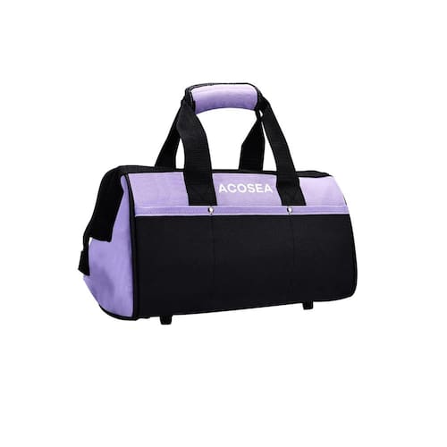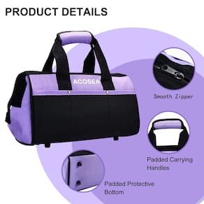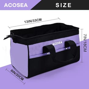 ACOSEA Bolsa de ferramentas roxa para mulheres, organizador de ferramentas com boca aberta de 33 cm de largura com 12 bolsos de armazenamento - Observação: o tamanho desta bolsa de ferramentas roxa é de 33 x 20 x 18 cm, considere o tamanho antes de comprar, por favor, não olhe para a primeira imagem para julgar o tamanho, a segunda imagem tem a marca de tamanho. - Bolsa de ferramentas feita com material forte, resistente à água que pode suportar uso pesado. Observação: esta bolsa de ferramentas para venda não inclui as ferramentas mostradas na imagem. - A bolsa de ferramentas roxa inclui cada três bolsos na frente e atrás que podem segurar suas ferramentas durante o trabalho. Além disso, há seis bolsos dentro da bolsa para organizar suas ferramentas - A bolsa de ferramentas tem pernas de plástico grossas na parte inferior, o que pode evitar o contato direto com o solo. A alça da bolsa de ferramentas é acolchoada para transporte confortável, o que pode reduzir lesões ao transportar ferramentas pesadas. - A bolsa de ferramentas roxa pode ser um presente de Natal, aniversário, dia dos namorados, dia das mães e assim por diante.