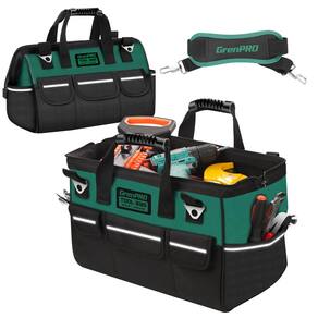 Materiais e construção premium – Esta bolsa de ferramentas é feita de tecido de poliéster 600D que oferece durabilidade e confiabilidade incomparáveis. O tecido duplo com costura fina de todo o corpo da ferramenta torna a bolsa resistente e duradoura. Não precisa se preocupar com a sua bolsa de ferramentas ser danificada ou quebrada durante o uso. - Bolsa de ferramentas de boca larga e aberta: esta bolsa de ferramentas possui boca aberta com uma armação de metal interna e zíper superior de tração dupla para facilitar a organização e o acesso. Basta puxar o zíper para abrir esta bolsa suavemente e colocar ou tirar suas ferramentas rapidamente quando necessário - Tecido Oxford 1680D: o kit é feito de tecido Oxford 1680D de alta qualidade sintetizado por quatro camadas: tecido Oxford, camada impermeável, folha de plástico PE, camada impermeável, que tem resistência superior, resistência, resistência a manchas e durabilidade de longa duração - Tiras refletivas: a bolsa de ferramentas é embalada com um anel de tiras reflexivas que aumentam a visibilidade e a segurança ao trabalhar em condições de pouca luz - Grande capacidade: 44,7 cm C x 26 cm L x 27,4 cm A. Tem 6 bolsos no interior e 8 na parte externa desta bolsa de ferramentas. Adequado para armazenar uma variedade de pequenas ferramentas manuais, ferramentas elétricas portáteis, mantenha suas ferramentas organizadas e faça o trabalho mais rápido - Design humanizado: as alças de borracha podem aliviar efetivamente a pressão de levantar objetos pesados, e o design com costura cruzada aumenta muito o peso do kit de ferramentas, que é adequado para marceneiros, eletricistas, mecânicos e a maioria dos artesãos