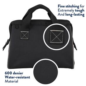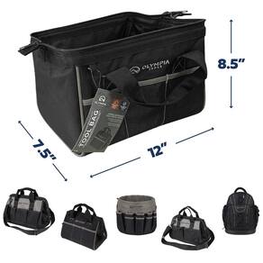 Bolsa de ferramentas Olympia de 30 cm, bolsa de ferramentas resistentes com 3 bolsos grandes, alças ajustáveis nos ombros e material reforçado 600D - Bolsa de ferramentas compacta e funcional medindo 30,5 x 17,8 x 23 cm, projetada com o artesão moderno em mente - Possui 4 bolsos pequenos, garantindo a organização eficiente de suas ferramentas essenciais - O material resistente à água 600 denier oferece proteção e durabilidade incomparáveis - Zíper duplo superior e alça de ombro projetadas para máxima segurança e conveniência - Atualize sua solução de armazenamento de ferramentas. Faça a escolha certa hoje!