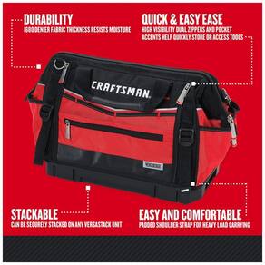 DURABILIDADE espessura do tecido de 1680 deniers, resiste à umidade. FACILIDADE DE USO Zíperes duplos de alta visibilidade e detalhes de bolso ajudam a zenar ou acessar rapidamente as ferramentas. ORGANIZAÇÃO DE FERRAMENTAS 31 bolsos e slots. ERGONOMIA Duas alças de transporte ergonômicas. FÁCIL E CONFORTÁVEL Alça de ombro acolchoada para transporte de carga pesada Marca: Não Informado