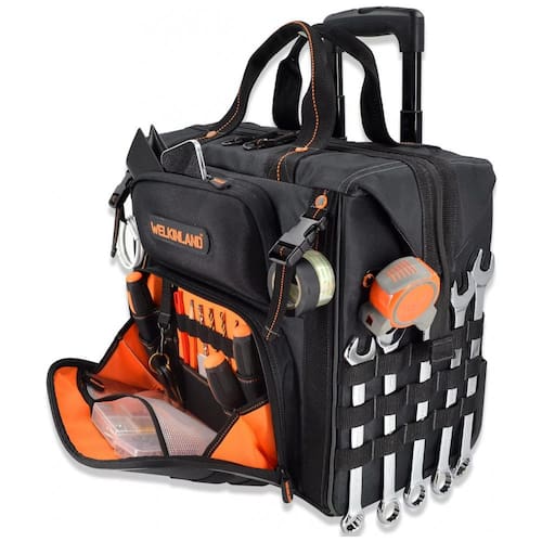 Nylon 1680D tecido balístico Oxford. Rodas grandes A caixa de ferramentas rolante constrói uma alça telescópica de titânio e rodas com piso de para fácil manobra em terrenos acidentados Um organizador de ferramentas rolantes construído para durar para Pro. Base robusta a bolsa organizadora rolante sobre rodas possui um fundo durável para proteger suas ferramentas da água e da lama. Portanto, esta bolsa de ferramentas rolável ajuda você a ficar longe de ferrugem. Uma bolsa de ferramentas rígida protetora. 46 Bolsos Este saco de ferramentas de rolamento técnico de vem com um compartimento ESPAÇOSO, 46 bolsos e 38 pcs Molle Loops para ajudá lo a se manter organizado. Um grande organizador de ferramentas de rolamento para serviço pesado. Acesso Rápido Esta grande sacola rolante com rodas constrói uma base rígida, mantendo os organizadores de ferramentas na vertical e totalmente abertos. E a parede de ferramentas robusta e o interior laranja proporcionam visibilidade extra. Resistente O porta ferramentas resistente constrói o tecido Ballistic 1680D. O hardware Gun Metal torna esta bolsa de ferramentas de viagem com rodas um caddy A Pro durável para ferramentas de rolamento. saco de canteiro de obras para Pro Marca: Não Informado