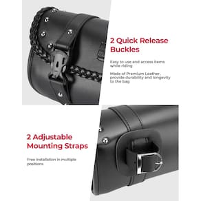 KEMIMOTO Bolsa de ferramentas para motocicleta, bolsa de garfo de motocicleta, bolsa universal de couro PU para garfo frontal de motocicleta, guidão, bolsa de armazenamento Sissybar, bolsa de rolo de motocicleta - ?Capacidade suficiente?Esta bolsa de couro premium para guidão de motocicleta possui costura superior e fivelas resistentes, com um tamanho espaçoso de 29 x 12 x 10 cm. Perfeito para carregar todos os seus itens essenciais, incluindo chaves, óculos de sol, carteira, carteira de motorista e celular. - ?Montagem versátil?Nossa bolsa de garfo de motocicleta inclui 2 tiras de montagem ajustáveis e 4 abraçadeiras de zíper, permitindo fácil instalação no guidão, barra maricas, garfos dianteiros e estrutura lateral. Compatível com a maioria dos tipos de bicicletas e motocicletas. - ?Acesso conveniente?Com 2 fivelas de plástico de liberação rápida, esta bolsa de ferramentas para motocicleta permite acesso sem esforço com uma mão aos seus itens. As alças traseiras ajustáveis e removíveis garantem o máximo de conforto e conveniência. - ?Armazenamento seguro?As abas laterais desta bolsa de garfo frontal para motocicleta fornecem proteção adicional contra quedas de itens enquanto também mantêm seus pertences secos durante chuvas de chuva inesperadas. - ?Tiras de couro com fivela de pino? Com duas tiras de instalação de fivela ajustáveis, o efeito fixo é melhorado, tornando-o mais adequado para dirigir em alta velocidade.
