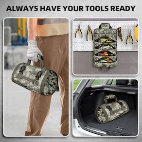 Apresentamos nossa bolsa de rolo de ferramentas de camuflagem 600D, a solução perfeita para organizar e transportar suas ferramentas com facilidade. Feita com durabilidade e funcionalidade em mente, esta bolsa de ferramentas oferece uma maneira conveniente de armazenar e transportar seu equipamento essencial. Com vários bolsos e compartimentos, mantém suas ferramentas organizadas e facilmente acessíveis. Seja você um comerciante profissional ou um entusiasta de bricolage, esta bolsa de ferramentas é projetada para atender às suas necessidades. Diga adeus à bagunça e olá à eficiência com nossa bolsa de ferramentas versátil - Bolsa de enrolar para ferramentas atualizada: esta bolsa de rolo de ferramentas é feita de tecido Oxford atualizado com revestimento de PVC à prova d'água dentro. Os zíperes à prova de ferrugem, tiras de qualidade, fivelas e borda bem costurada tornam a durabilidade duradoura. O material atualizado e o revestimento de PVC em conformidade com a mais recente E-Mark, com menor cheiro e sem danos à saúde. - Rolo de ferramentas de grande capacidade: esta bolsa de rolo de ferramentas tem totalmente 11 bolsos, com esta bolsa de ferramentas, você pode organizar eficientemente suas ferramentas como chaves de fenda, chaves, apertos, catracas, alicates. 2 bolsos removíveis oferecem a melhor escolha para separar peças pequenas, como engrenagens, pregos e soquetes, para que você não precise vasculhá-las em uma pilha de ferramentas. - Compacto e portátil: com esta bolsa de enrolar para ferramentas, você pode levar as ferramentas necessárias/de emergência com você quando sair para viajar ou trabalhar, é compacta quando você a enrola, economizando muito espaço para você, ótimo para UTV, caminhão, off-road, carro, barco, motocicleta ou bicicleta. - Melhores presentes para o pai: esta bolsa de enrolar seria um bom assistente para carpinteiro, eletricista, encanador, reparador, artesão, faz-tudo, etc. Se você se sentir difícil de comprar um presente para seu marido, seu pai, membro da família ou seu amigo, esta bolsa de ferramentas seria uma excelente escolha para você. - Cinto de ombro exclusivo: a bolsa de ferramentas tem uma alça de ombro ajustável de 114 cm, adequada para homens de diferentes alturas. Alça confortável oferece opções de transporte adicionais.