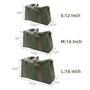 Bolsa de ferramentas de lona multifuncional para chave de armazenamento, chaves de fenda. Largura da boca e fecho de zíper, fácil de colocar e tirar ferramentas. Material durável: lona, forte e resistente, resistente a rasgos e impermeável. Alça resistente: bolsa portátil, com alça, fácil de transportar. Grande capacidade: bolsa de ferramentas de boca larga, sua bolsa pode abrir mais e permanecer aberta durante os trabalhos, é muito conveniente para você encontrar exatamente ferramentas. Três tamanhos para suas opções. P = 30 cm: 29 cm C x 12 cm L x 19 cm A M = 35 cm: 35 cm C x 14 cm L x 19 cm A G = 40 cm: 39 cm C x 14 cm L x 21 cm A Estas bolsas de ferramentas funcionais são perfeitas para suas ferramentas de jardim, artes e artesanato, marcenaria, eletrônicos e acessórios de rede e peças pequenas e assim por diante. Segura facilmente martelos, chaves de fenda, parafusos, alicates, porcas, pregos, fitas, conectores, soquetes, cinzéis, facas de massa, óculos de segurança, cortadores de fio e decapadores, grampos, alicates, facas utilitárias, cortadores de caixa, fitas métricas, réguas, chaves, localizadores de pinos, limas de metal, brocas, grampeadores, pincéis, laços de zíper e muito mais! O pacote inclui: 1 bolsa de ferramentas de lona - Bolsa de ferramentas de lona resistente: este organizador de bolsas também é feito de material de lona resistente e resistente, com fecho de zíper suave, resistente e confiável, à prova d'água e resistente ao desgaste. A pequena bolsa de ferramentas protegerá suas ferramentas de água e manchas, garantindo que suas ferramentas sejam seguras em condições de trabalho extremamente difíceis. - Zíper e boca larga: a bolsa de ferramentas mecânicas possui boca ampla aberta com um zíper grande estendido para facilitar a visibilidade e acesso às ferramentas que você precisa. Nossa bolsa de ferramentas pode ser dobrável, fácil de armazenar suas ferramentas, reparo de carro/motocicleta e peças de reposição no carro para viagens. Uma ótima ferramenta de presente de Natal para homens, mulheres, pai, marido, ele. - Bolsa com alça de viagem fácil e de alta capacidade: projetada com alça portátil, fácil de transportar e viajar. Nossas sacolas utilitárias têm apenas um espaço para armazenar com grande capacidade, vários tamanhos para opções (12/14/16/18/50.8 cm), você pode facilmente organizar suas pequenas ferramentas, peças e acessórios com esta bolsa de mão de tamanhos diferentes. Aparelhos legais para homens, jardineiros, carpinteiros, eletricistas, mecânicos, amadores. - Sacos de ferramentas multiuso para homens: armazenamento conveniente para martelos, alicates, chaves, chaves de fenda, chaves de fenda, parafusadeiras, pregos, fitas, outras ferramentas e peças de reposição. Este estojo de armazenamento de ferramentas é adequado para manutenção de veículos, marcenaria, construção, técnicos, trabalhadores de carpintaria, etc. Mas pode ser utilizado como bolsa de cabo, bolsa de acessórios de viagem, bolsa de mecânico, bolsa de artista, bolsa de pincel, bolsa de maquiagem, bolsa de eletrônicos, bolsa de construção, bolsa de ferramentas com zíper, bolsa de ferramentas etc. - Serviço de qualidade: esta bolsa de ferramentas para eletricista apresenta painéis inferiores reforçados para maior durabilidade. Se você não estiver satisfeito com nossos sacos de chave inglesa por qualquer motivo, para obter um reembolso ou troca sem perguntas.