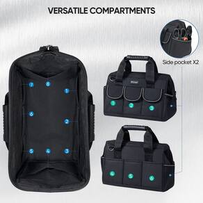 Bolsas de ferramentas, caixa de ferramentas móvel, bolsas de ferramentas resistentes, bolsas de ferramentas para eletricistas, bolsa de ferramentas para mulheres, bolsas de ferramentas para construção, bolsa de ferramentas à prova d'água, caixa de ferramentas para carro, bolsa de enrolar ferramentas, sacola de ferramentas - [Design robusto e qualidade premium] Esta bolsa de ferramentas resistente herdada da TICONN é feita de tecido oxford 600D. Áreas críticas, como alças e zíperes, são reforçadas para garantir a sobrevivência nas condições mais difíceis - Prático e funcional: a ampla abertura da boca facilita o carregamento de ferramentas maiores. 8 bolsos laterais na parte externa oferecem fácil acesso às pequenas ferramentas que você mais precisa. A base torna o fundo da bolsa impermeável e resistente à abrasão. Também ajuda a manter a forma desta bolsa de armazenamento de ferramentas. - [Ampla aplicação] Design de uso geral para permitir que você aproveite ao máximo este organizador de ferramentas. Não importa se você é um proprietário ou um profissional que transporta ferramentas elétricas, mecânicas, drywall, HVAC, construção ou chaveiro, você encontrará um lugar para esta bolsa de ferramentas versátil - [Faça da ferramenta uma alegria] A alça ergonômica e a alça de ombro ajustável espessa e acolchoada tornam o transporte de ferramentas pesadas menos estressante em comparação com outras pequenas caixas de ferramentas. Tiras refletivas integradas tornam o transporte noturno mais seguro. Também facilita a identificação desta bolsa de ferramentas no ambiente escuro - Compromisso com a qualidade da marca TICONN Se por algum motivo você não estiver satisfeito com sua compra, . Fornecemos 30 dias de devolução do dinheiro e garantia vitalícia. 100% de satisfação garantida para compras sem risco!
